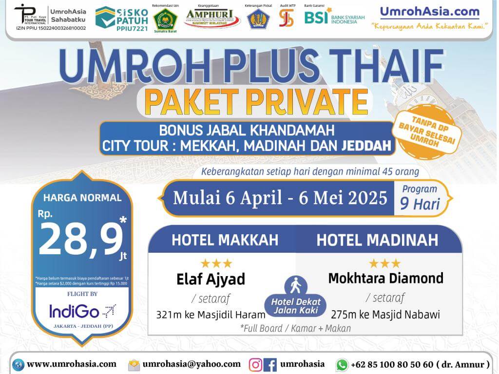[PILIH TANGGAL] Umroh Plus Thaif Super Lengkap PRIVATE