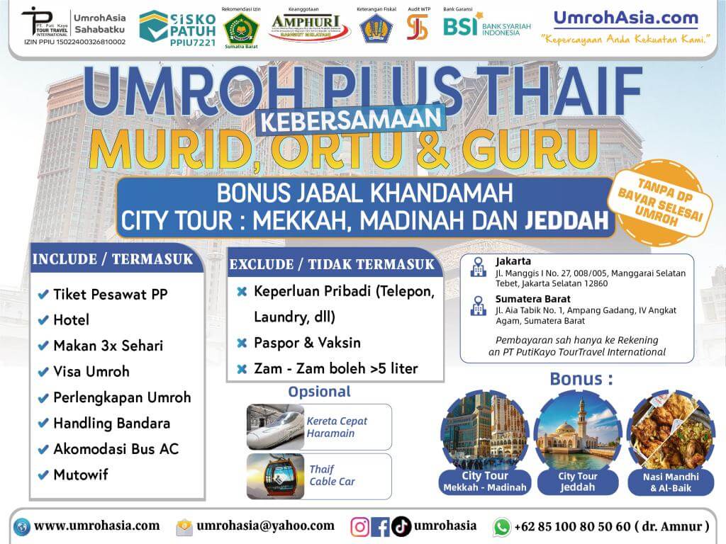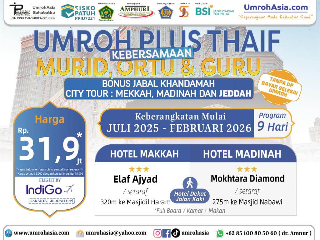 PAKET KEBERSAMAAN MURID, ORTU DAN GURU UMROH PLUS THAIF [JULI 2025 - FEBRUARI 2026]