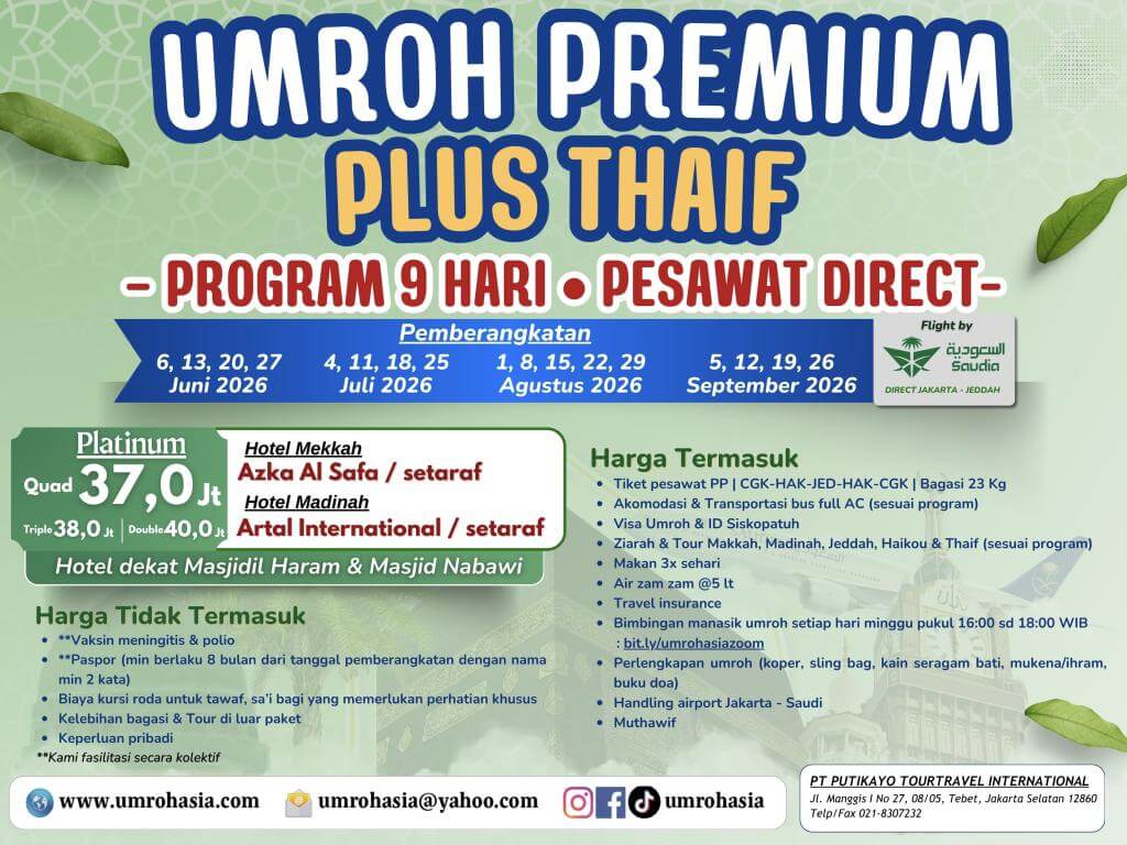 UMROH PREMIUM PLUS THAIF DIRECT - Paket Platinum