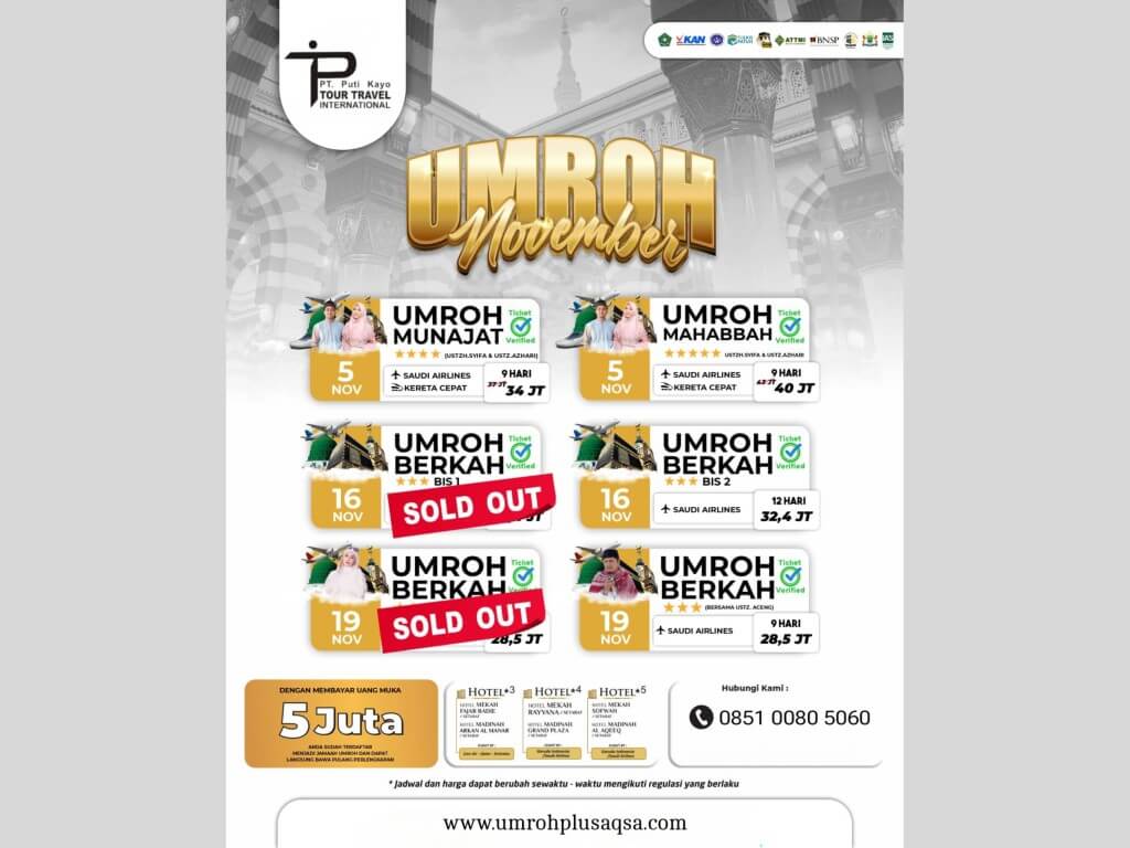 - Dokumen dan pelunasan sudah kami terima minimal 1 bulan sebelum keberangkatan