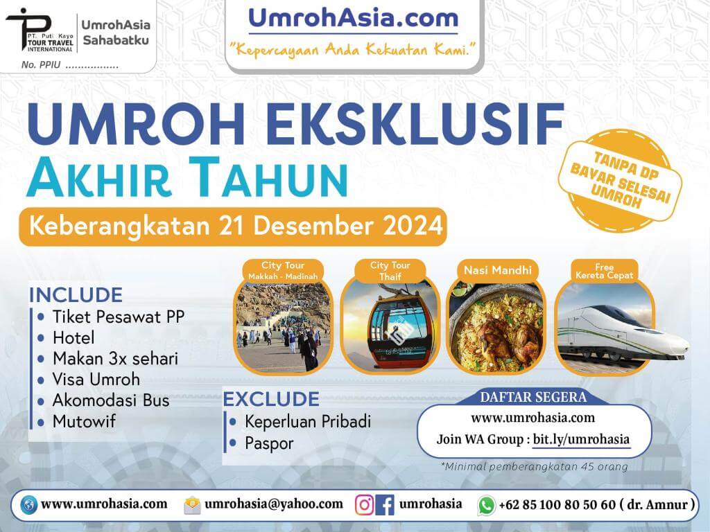 - Dokumen dan pelunasan sudah kami terima minimal 1 bulan sebelum keberangkatan