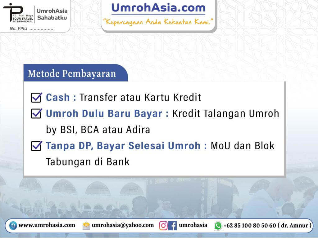 - Dokumen dan pelunasan sudah kami terima minimal 1 bulan sebelum keberangkatan